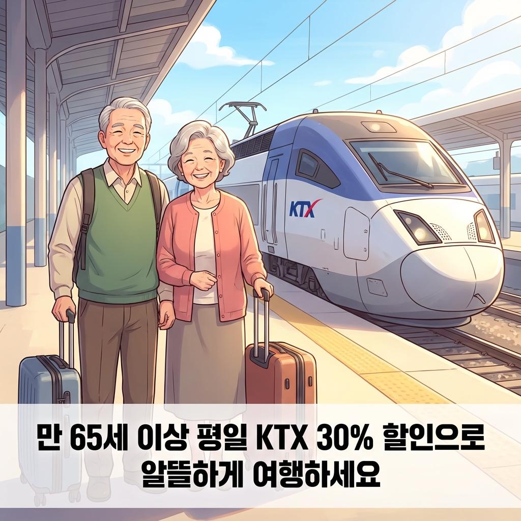 기차 여행의 낭만을 즐기시는 분들이라면 가장 먼저 확인해야 할 것이 바로 KTX와 SRT의 경로 할인입니다. 우리나라는 만 65세가 되는 생일부터 공식적인 경로 우대 대상자가 됩니다. 이때 가장 큰 혜택은 바로 평일 요금 할인인데요. 일반적으로 KTX와 같은 열차는 평일(월~금)에 이용할 경우 운임의 30%를 감면해 줍니다.